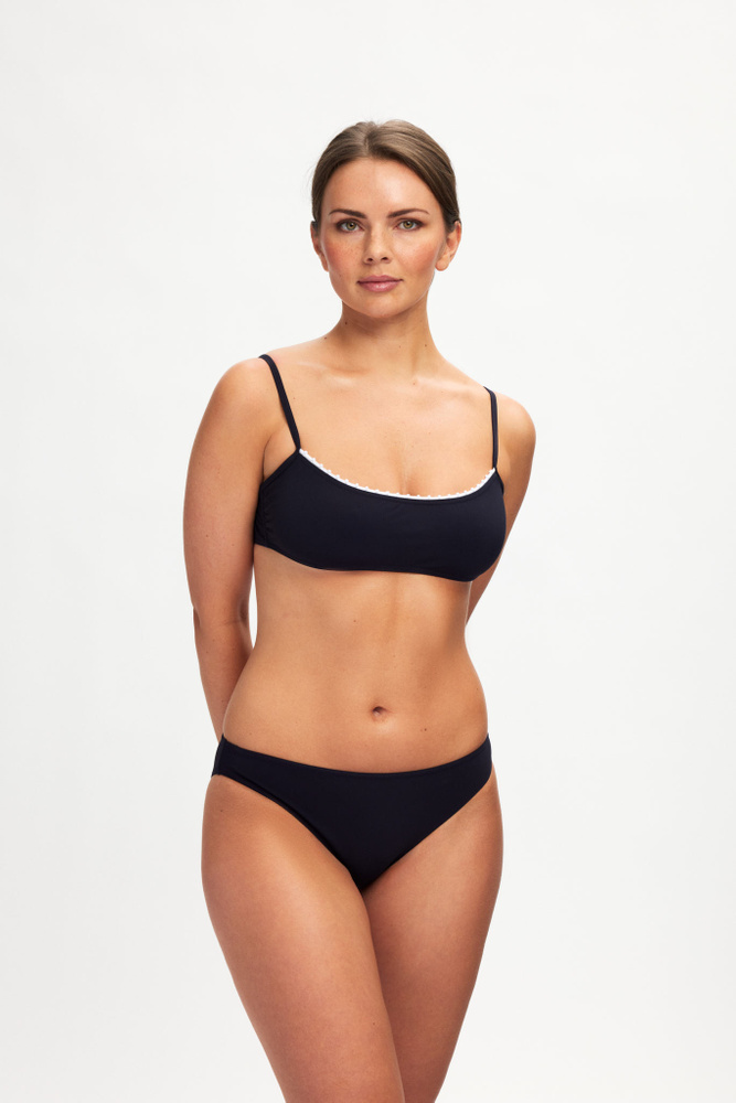 Bikinitrosa med medelhög midja i ett slätt och snabbtorkande material med mjuk och bekväm känsla. Designad för att sitta skönt på höfterna och ge en smickrande silhuett med balanserad täckning och bra rörelsefrihet.